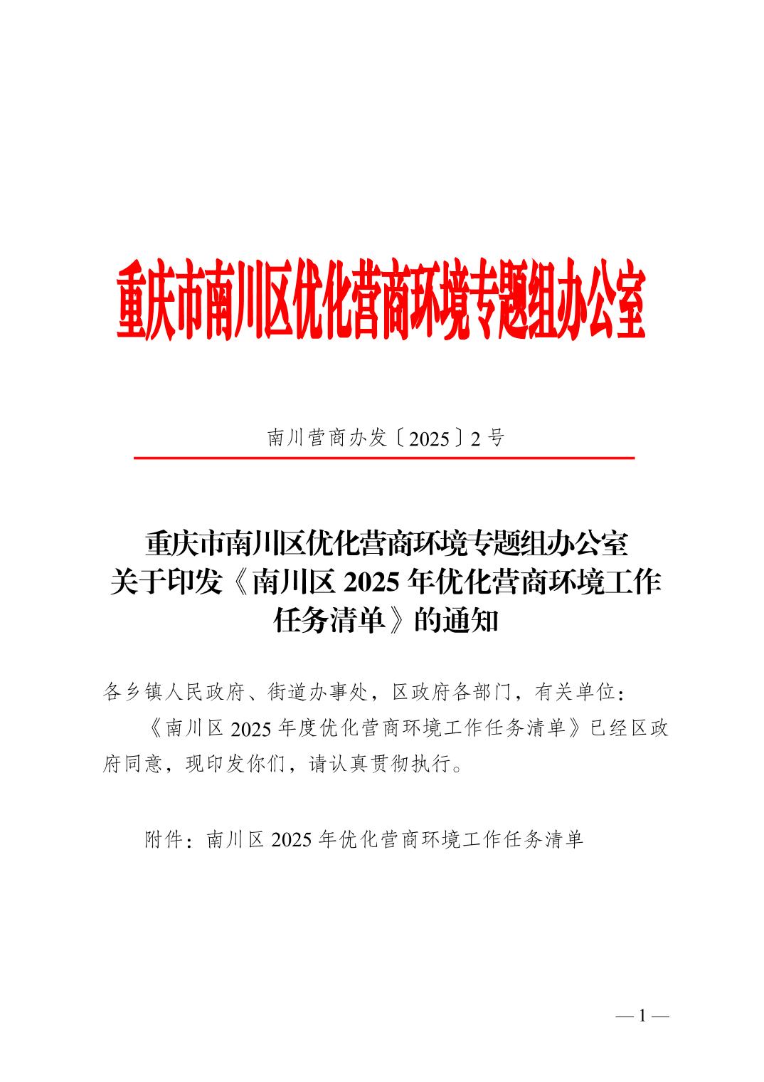 南川营商办发〔2025〕2号(关于印发《南川区2025年优化营商环境工作任务清单》的通知).pdf