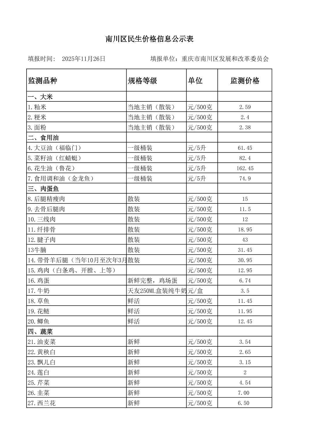 您当前的位置:首页>区政府部门>重庆市南川区发展和改革委员会>政务信息>民生价格信息