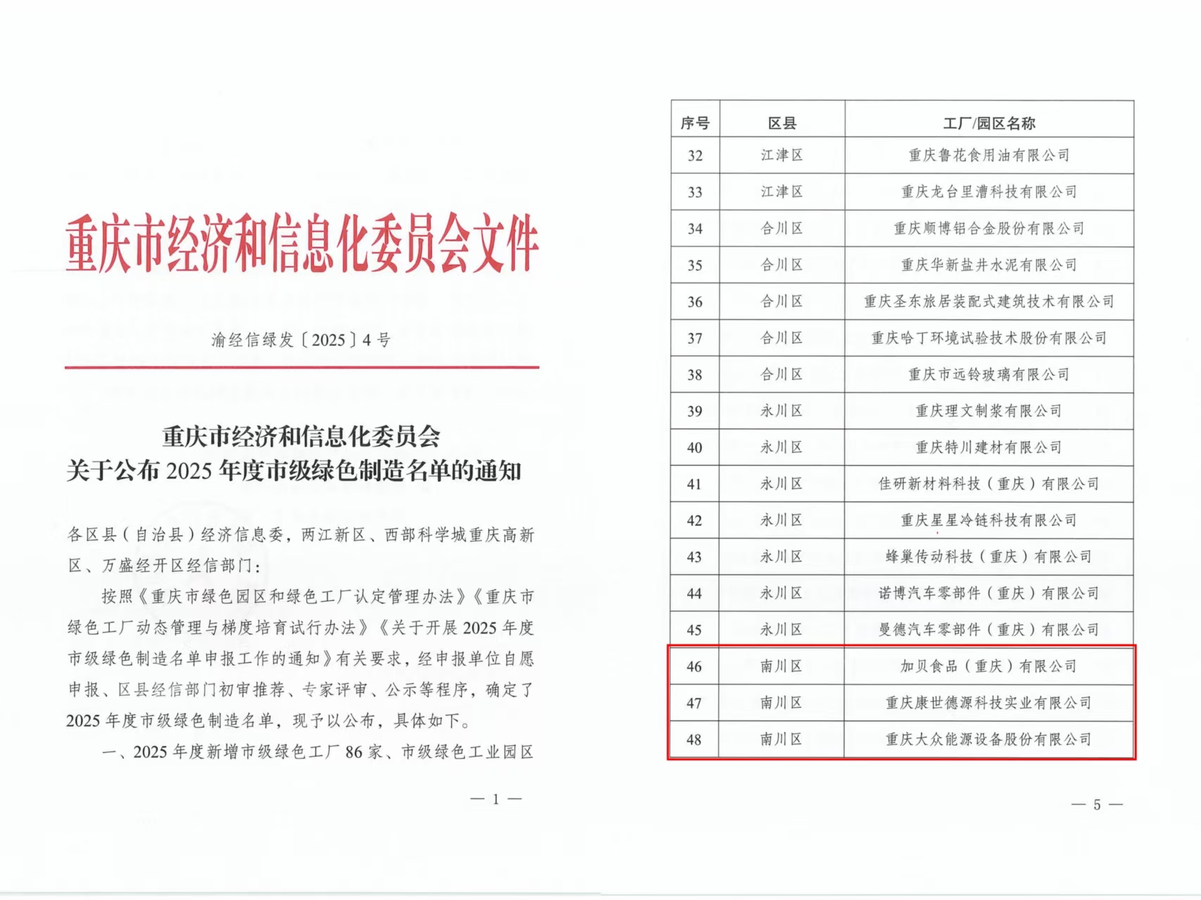年度绿色制造名单,重庆康世德源科技实业有限公司、重庆大众能源设备股份有限公司、加贝食品(重庆)有限公司等
