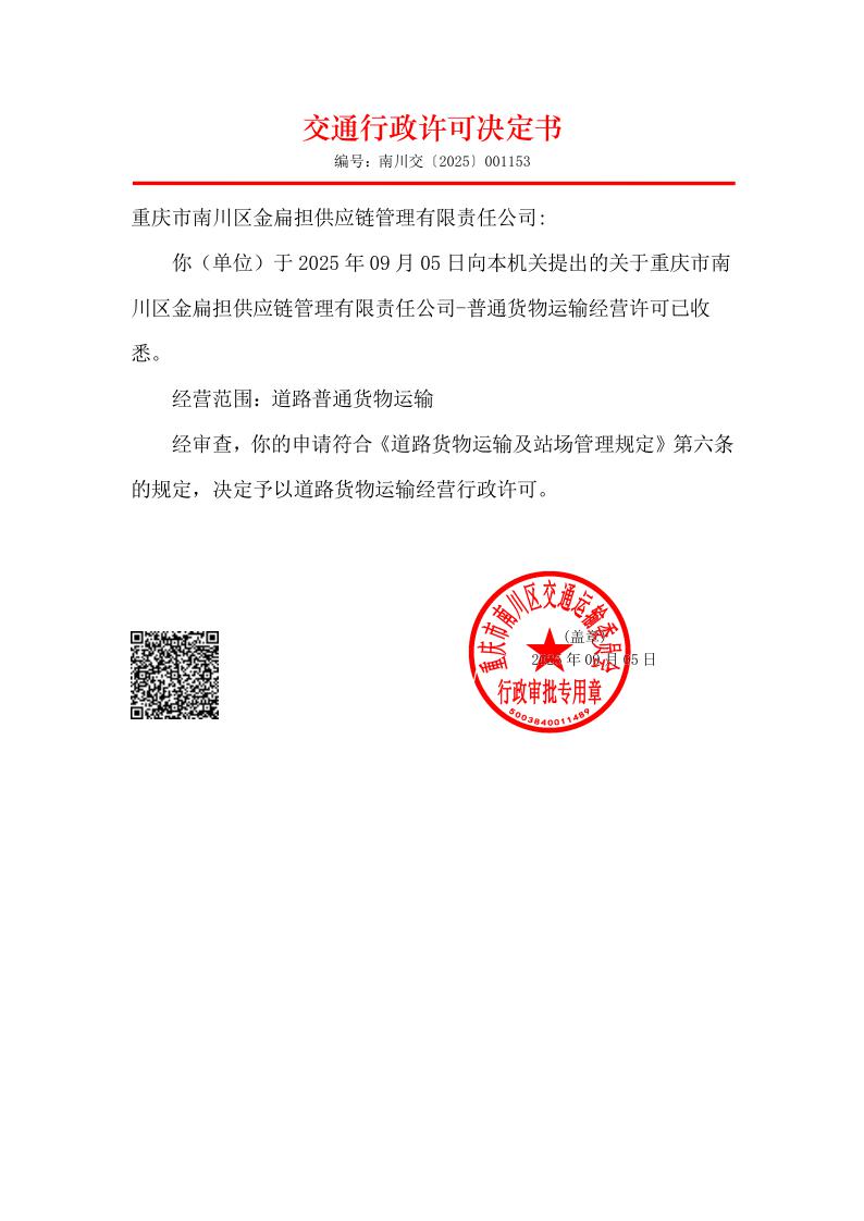 重庆市南川区交通运输委员会行政许可决定书