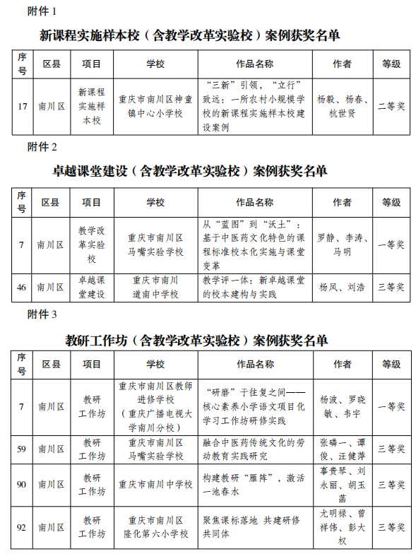 喜报!南川区7项案例获新领雁工程项目暨教学改革实验校建设奖项