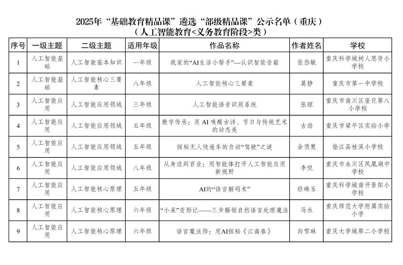 近日,教育部公示2025年“基础教育精品课”遴选结果,我区隆化八小“人工智能语音识别系统”课例获评2025年“基础教育精品课”遴选“部级精品课”(人工智能教育<义务教育阶段>类)。