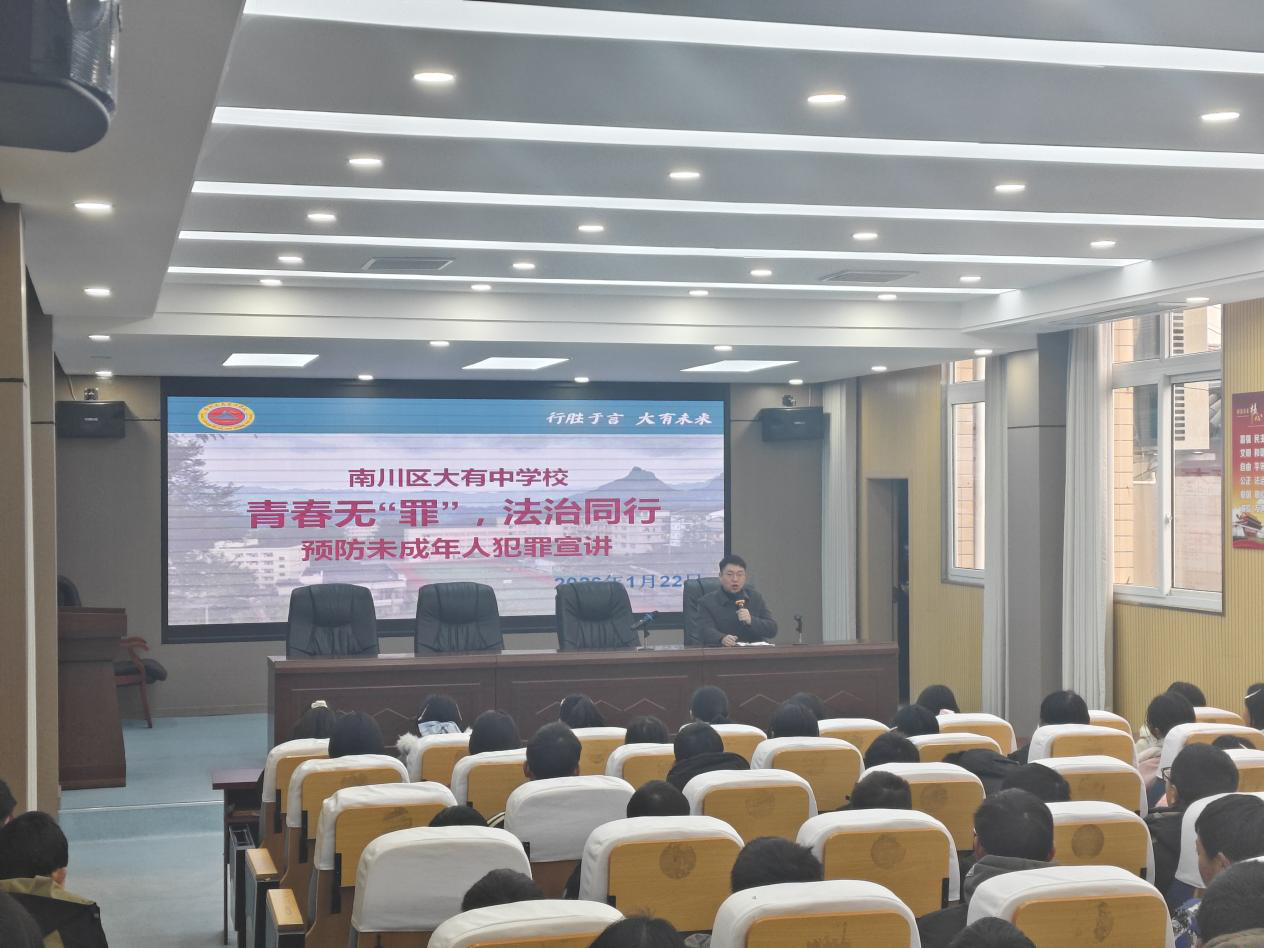 为进一步增强青少年法治观念,有效预防未成年人违法犯罪,营造平安、和谐、健康的校园成长环境,1月22日,大有镇司法所联合大有镇综治中心、派出所走进大有镇中学,举办了一场以“青春无罪,法治同行”为主题的预防未成年人犯罪专项普法宣讲活动。