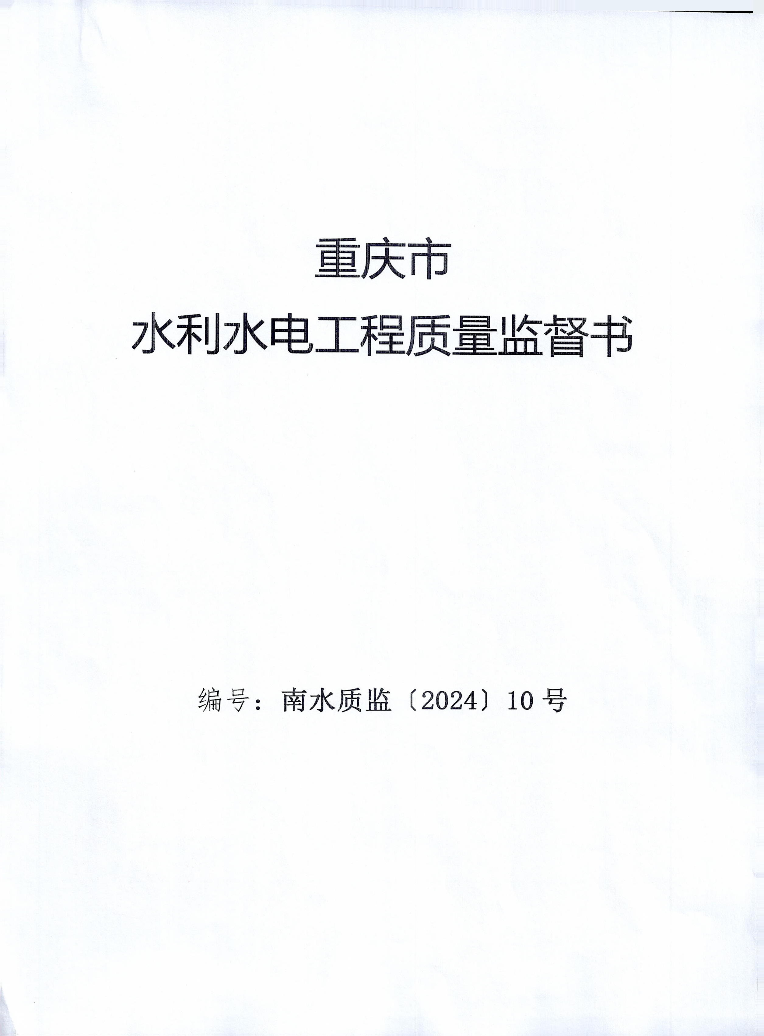 重庆市水利水电质量监督书(南川区山岔河山洪沟治理项目)
