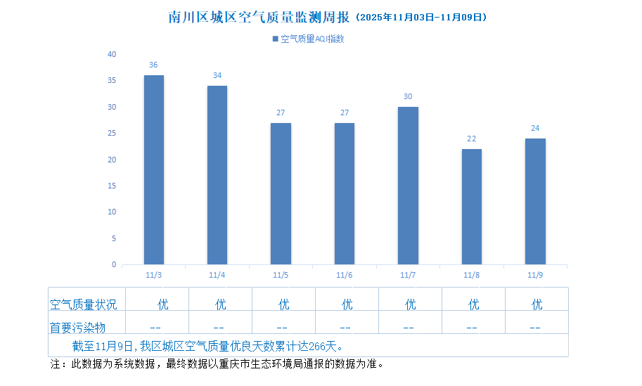 南川区城区空气质量监测周报(2025年11月3日—11月9日)