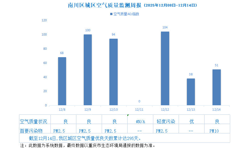 南川区城区空气质量监测周报(2025年12月8日—12月14日)