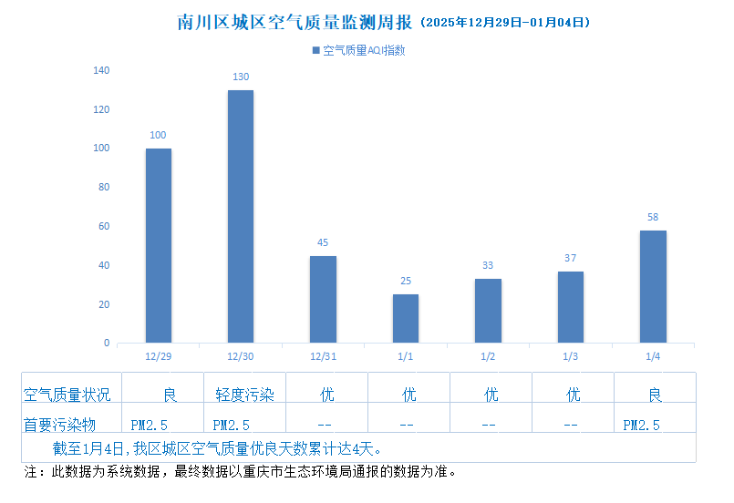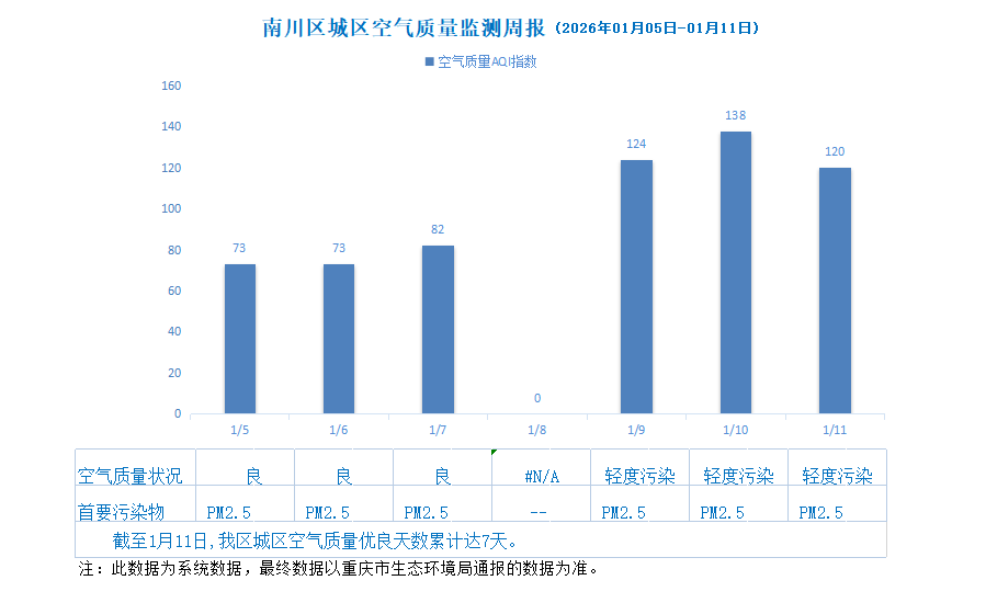 南川区城区空气质量监测周报(2025年12月29日-2026年1月11日)