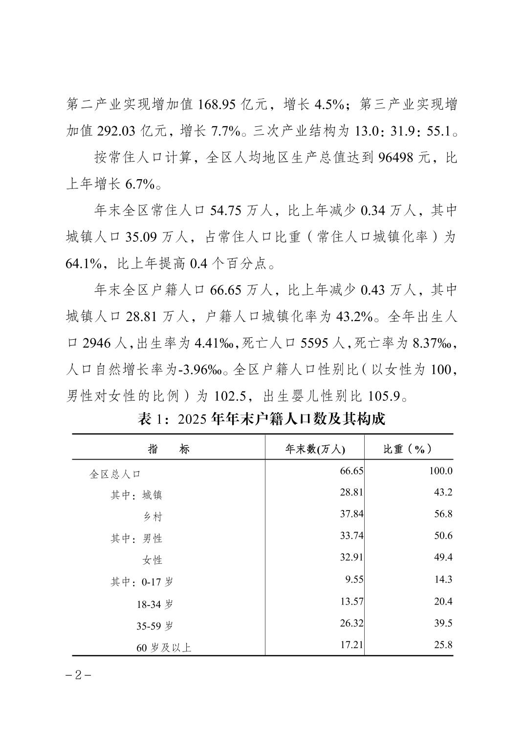 2025年重庆市南川区国民经济和社会发展统计公报