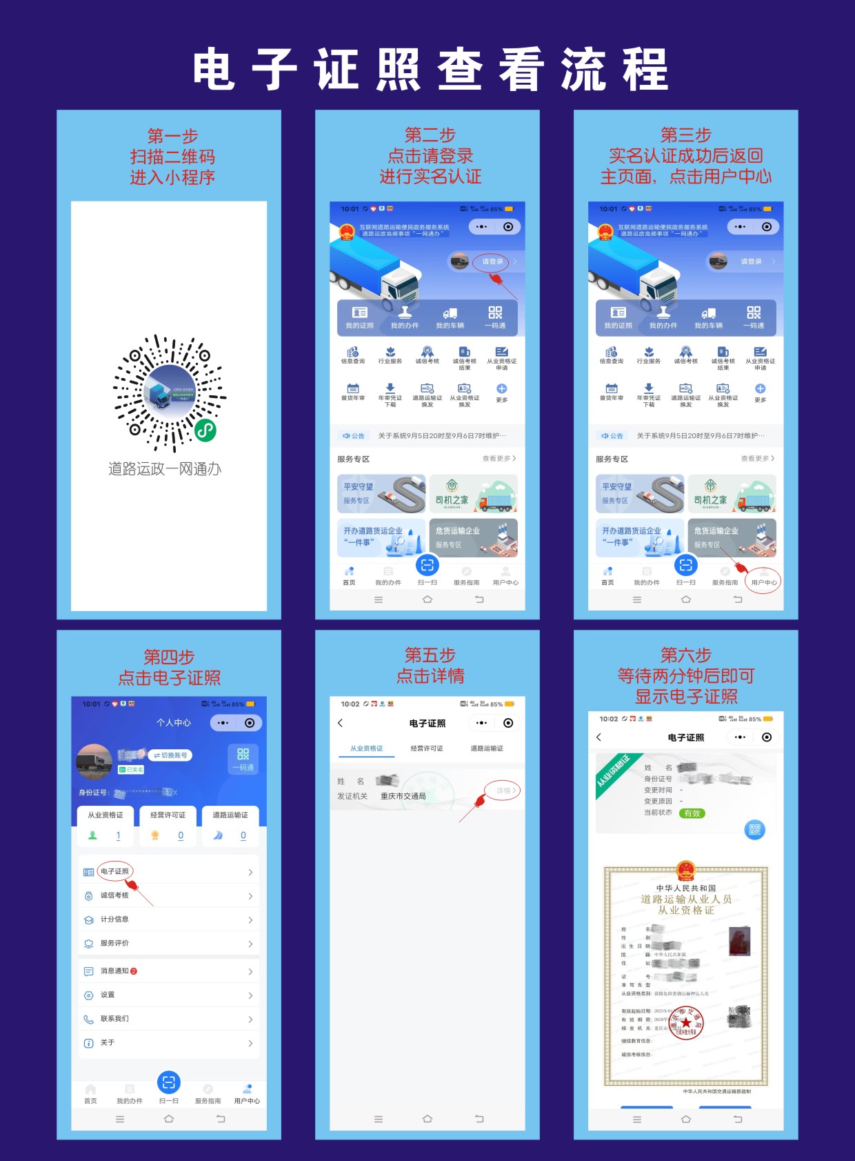 第六步等待两分钟后即可显示电子证照。