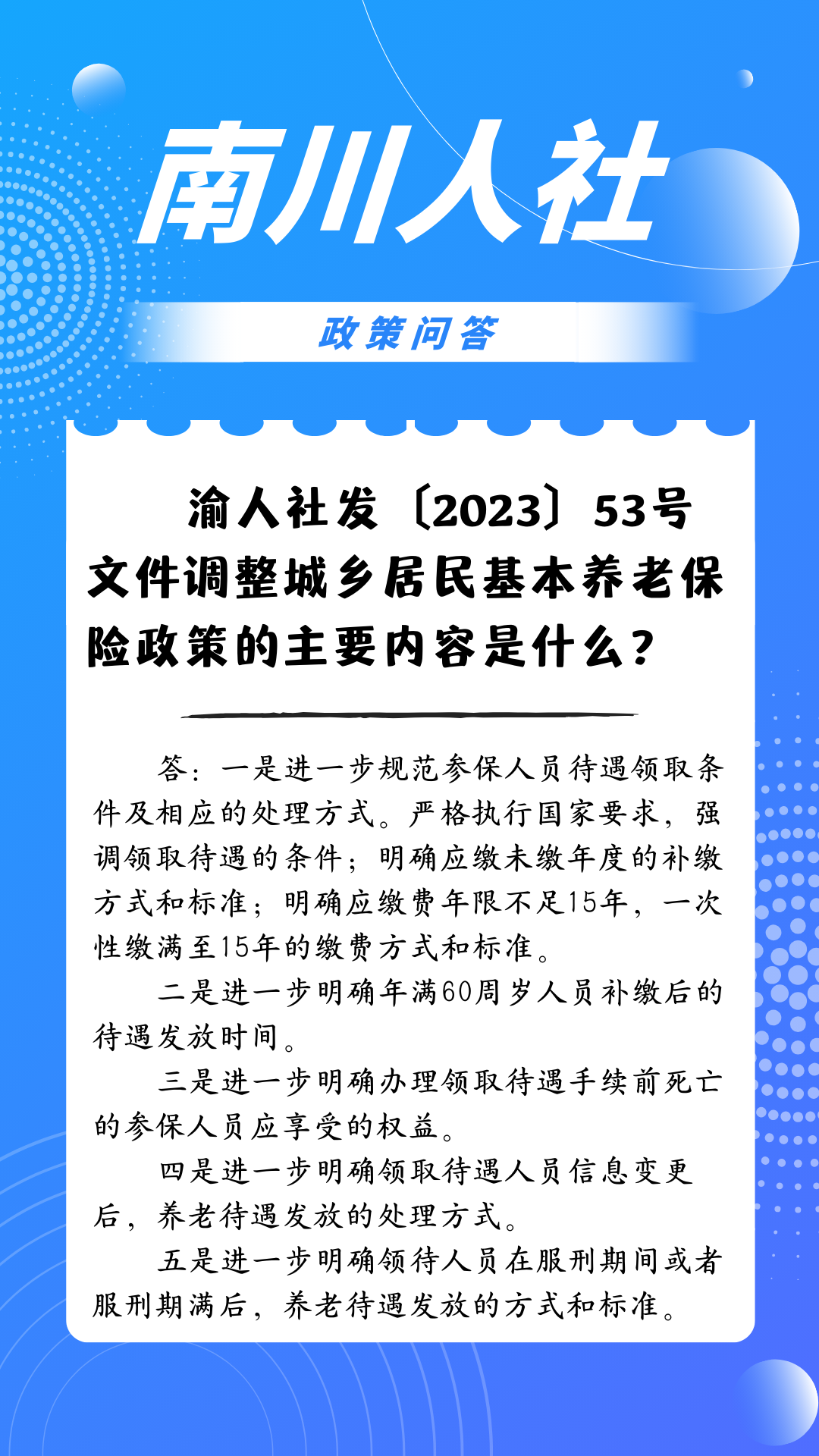 答:一是进一步规范参保人员待遇领取条件及相应的处理方式。严格执行国家要求,强调领取待遇的条件;明确应缴未缴年度的补缴方式和标准;明确应缴费年限不足15年,一次性缴满至15年的缴费方式和标准。
