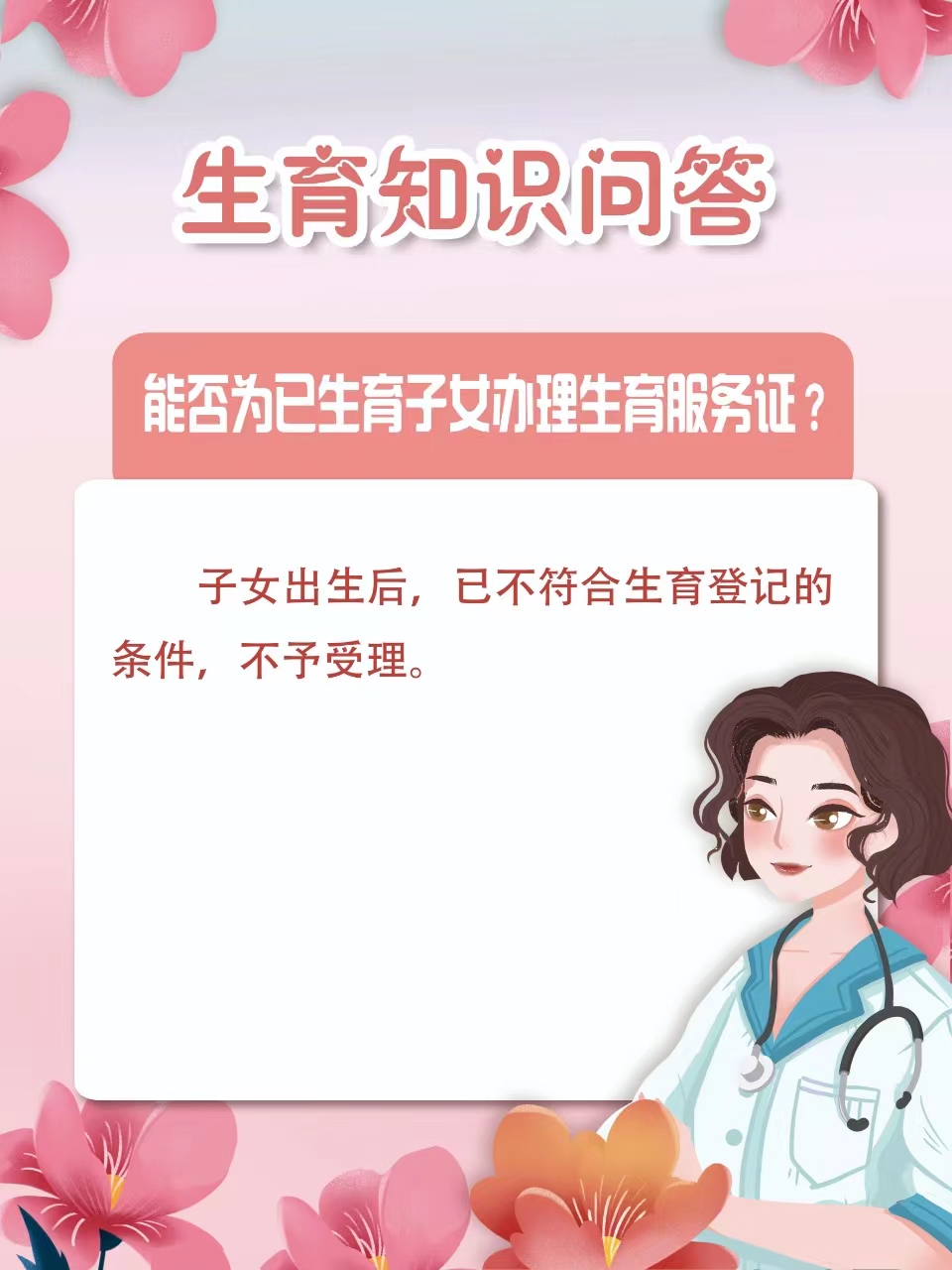 答:子女出生后,已不符合生育登记的条件,不予受理。
