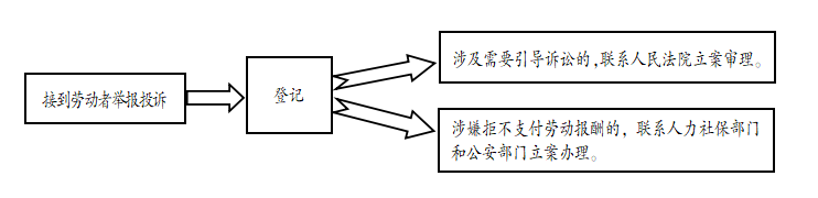 (1)查处借讨要工资或工程款名义,实施扰乱公共秩序等违法行为。 (2)定期召开行刑联席会议。 (3)开展治理欠薪民生司法保障工作。 (4)对劳动报酬争议落实立案登记、先予执行制度。开展涉民生执行案件“迅雷行动”。 (5)对劳动报酬争议法律援助申请免于审查户籍和经济条件,公共法律服务中心为劳动者依法提供免费法律服务。 |