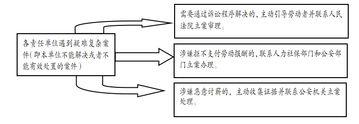 (1)推行欠薪事件属事属地“双交办”制度。 (2)落实欠薪事件处置质效评估机制。 (3)落实欠薪事件和舆情应急联动处置制度。 |